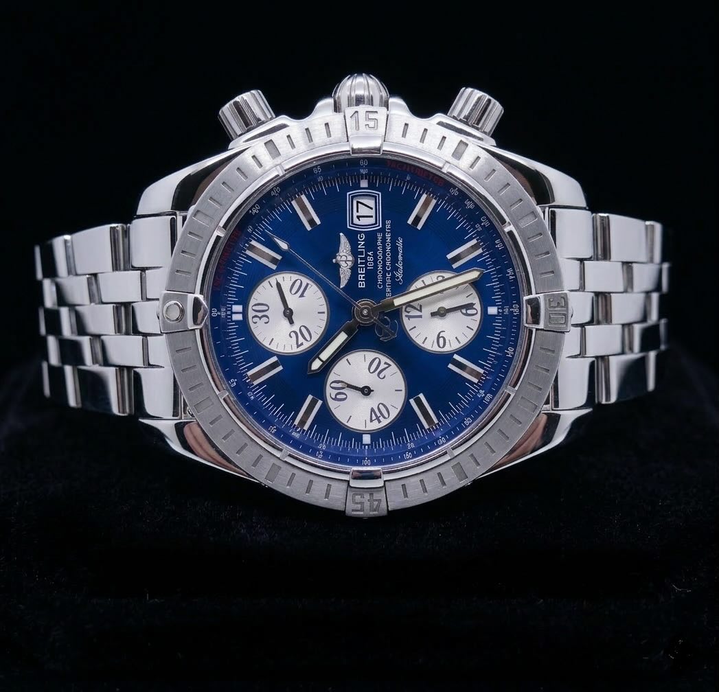 La Breitling Chronomat Evolution réf. A13356 incarne l’ADN sportif et technique de la maison suisse Breitling. Dotée d’un design robuste et d’un cadran bleu profond, cette montre de caractère allie performance, lisibilité et élégance. Pensée à l’origine pour les pilotes, elle s’impose aujourd’hui comme une référence incontournable du chronographe de luxe.