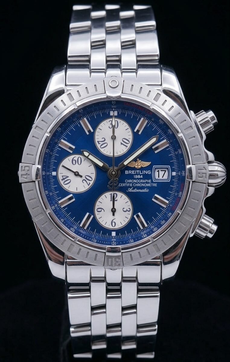 La Breitling Chronomat Evolution A13356 cadran bleu est une montre idéale pour les amateurs de chronographes robustes et emblématiques. Elle combine parfaitement technicité horlogère, esthétique sportive et valeur patrimoniale, ce qui en fait un excellent choix aussi bien pour le quotidien que pour une collection.