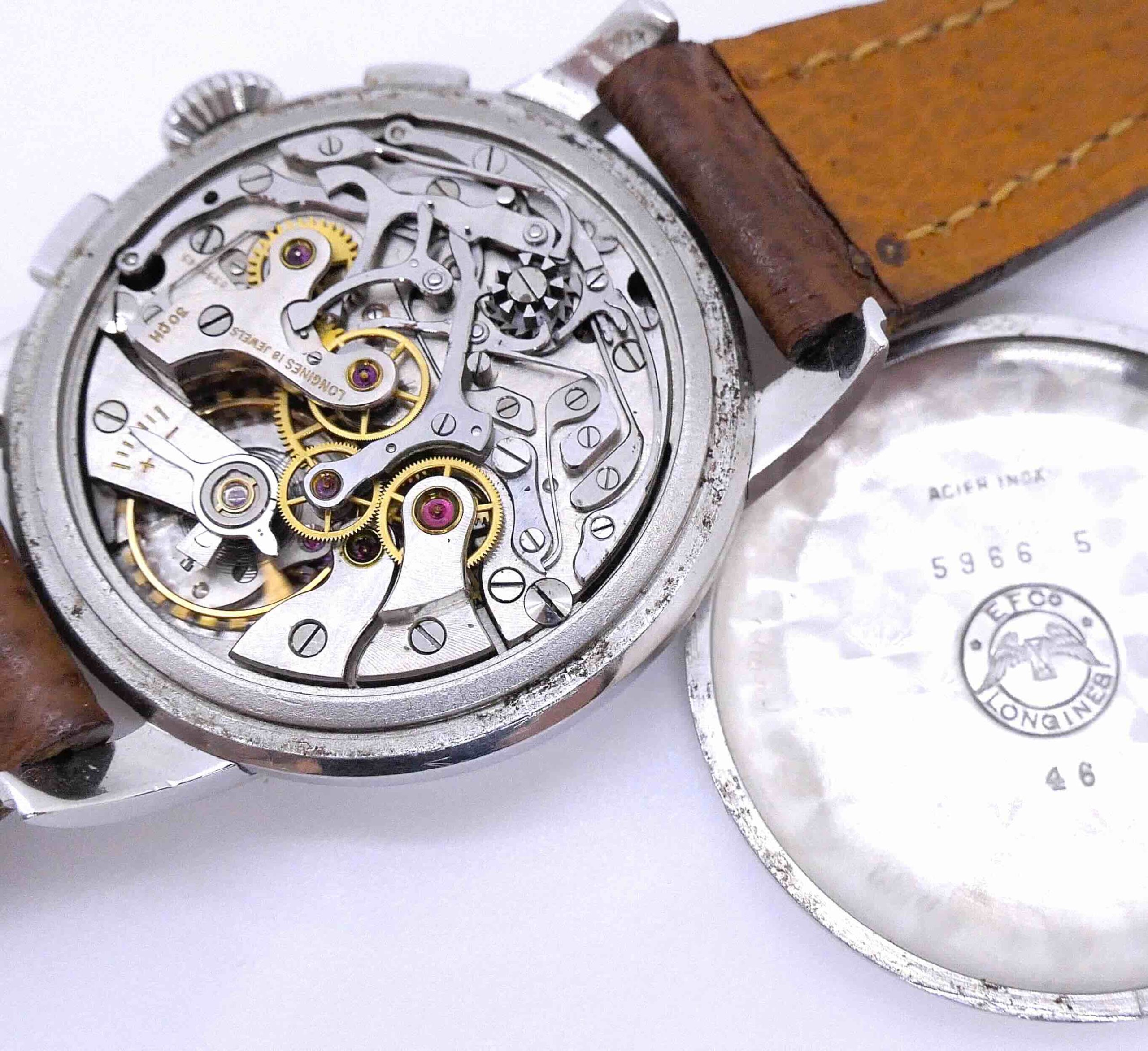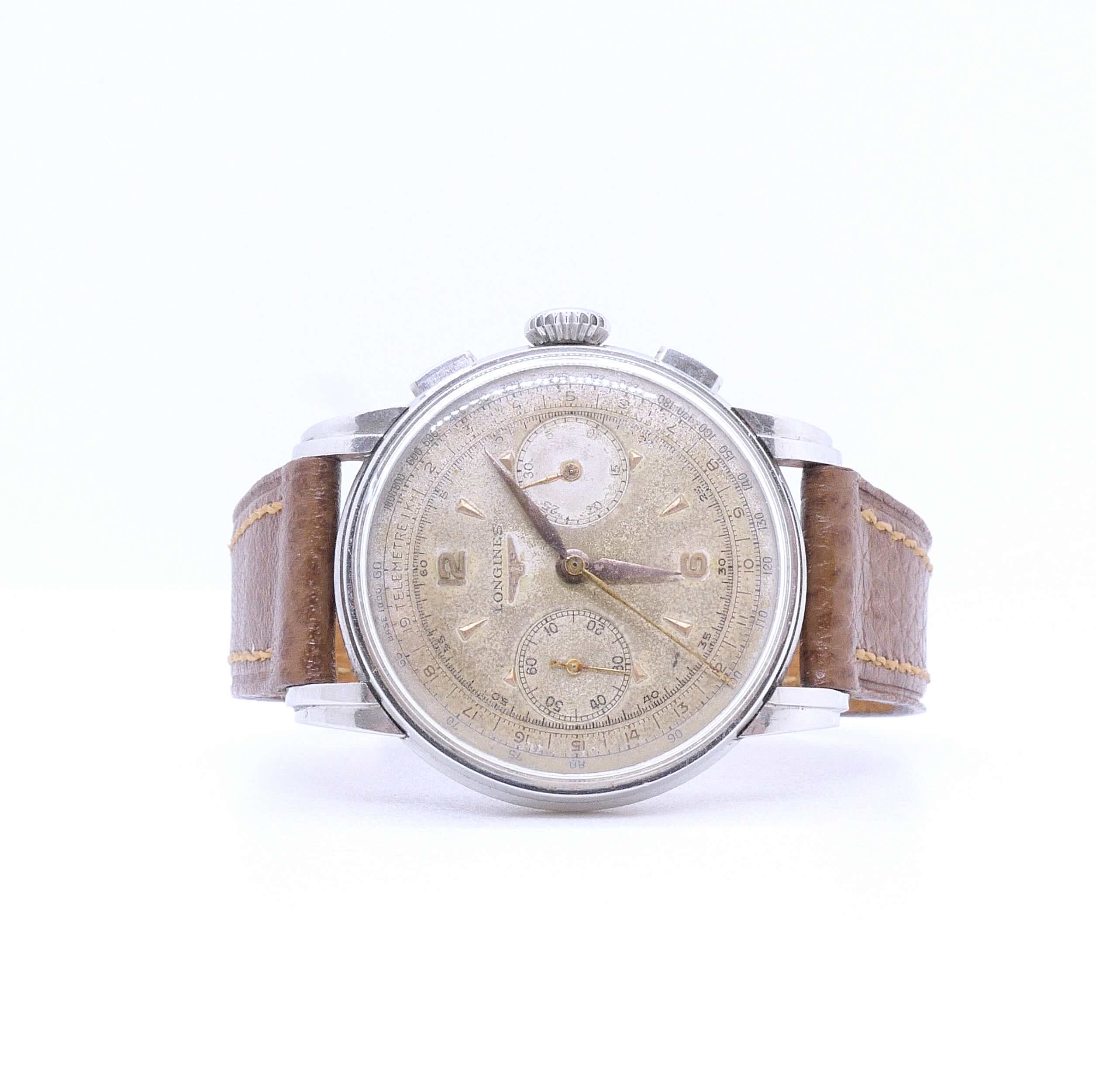 Chronographe Longines calibre 30CH Flyback (retour en vol) avec boîtier français acier de 1952, un véritable joyau de l’horlogerie suisse,