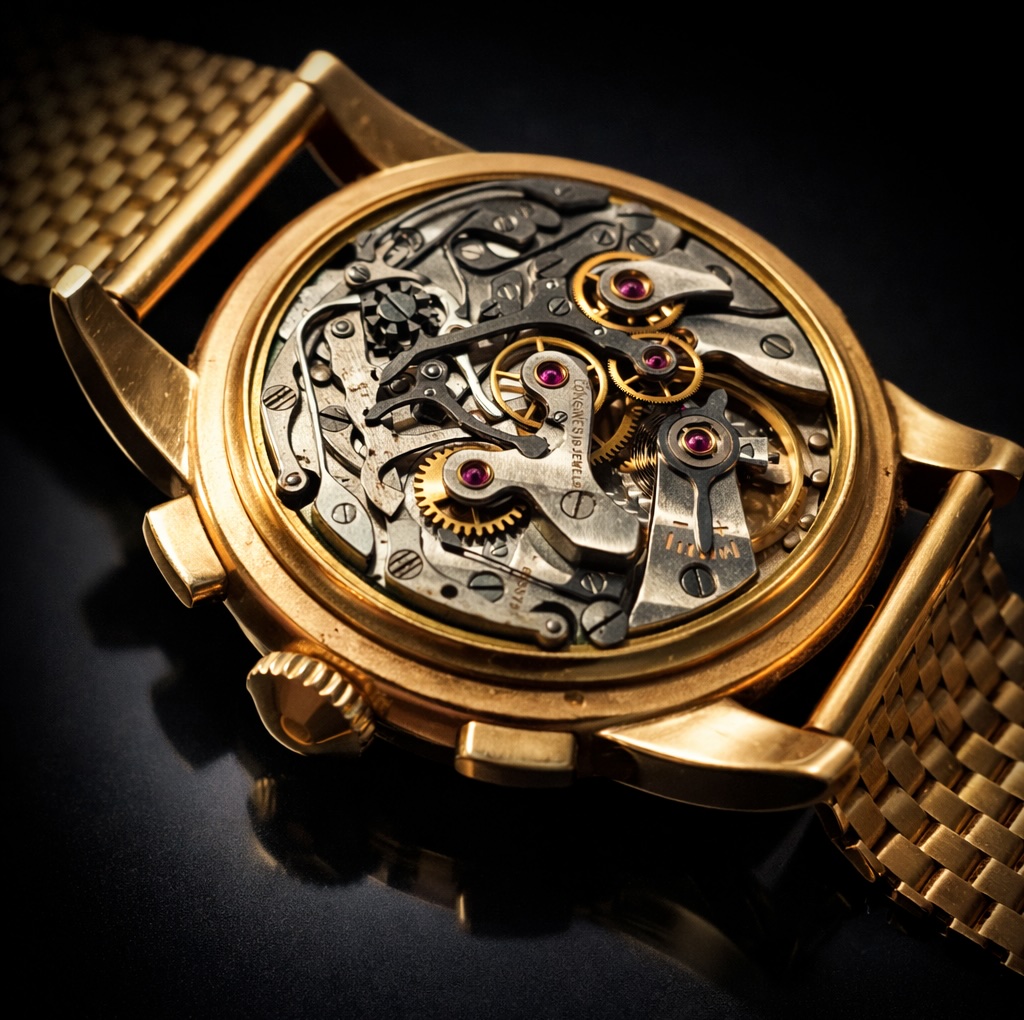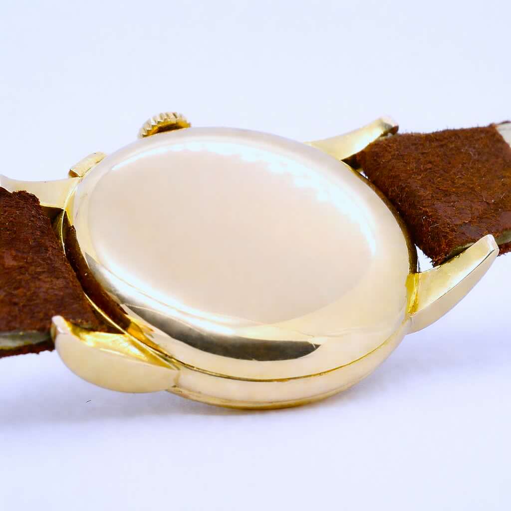 Le fond en or massif porte clairement le logo Longines, confirmant l’authenticité de la pièce. Le mouvement, visible sur la dernière image, révèle l’exceptionnelle qualité de fabrication Longines avec ses 18 rubis et sa caractéristique roue à colonnes.